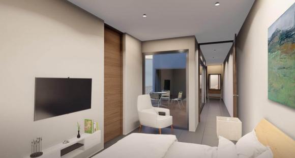 Los departamentos contarán con una recamara principal con vestidor y baño completo, recamara secundaria, 2 baños, sala, comedor, cocina, acabados de lujo, terraza, cuarto de lavado y cajón de estacionamiento. El desarrollo contará con Lobby, elevador, cisterna, CCTV y vigilancia.